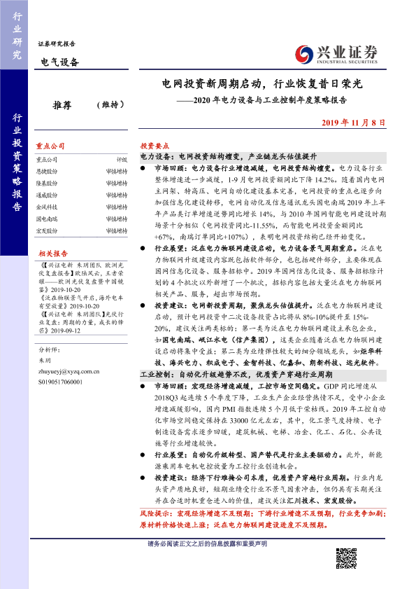 【兴业证券】【20191108】电网投资新周期启动,行业恢复昔日荣光——2020年电力设备与工业控制年度策略报告-33页