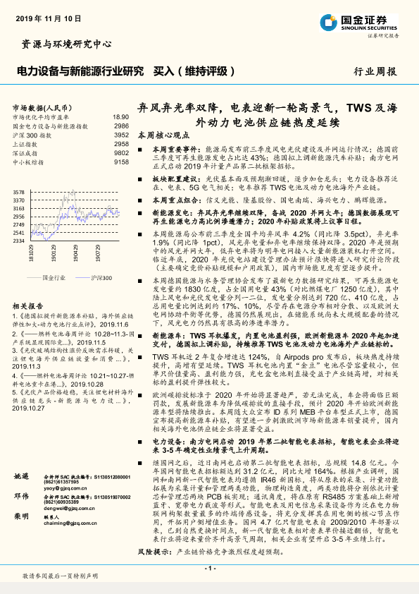 【国金证券】【20191110】电力设备与新能源行业研究周报:弃风弃光率双降,电表迎新一轮高景气,TWS及海外动力电池供应链热度延续-4页
