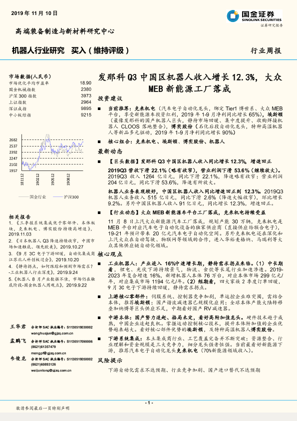 【国金证券】【20191110】20191110-国金证券-机器人行业周报:发那科Q3中国区机器人收入增长12.3%,大众MEB新能源工厂落成-15页