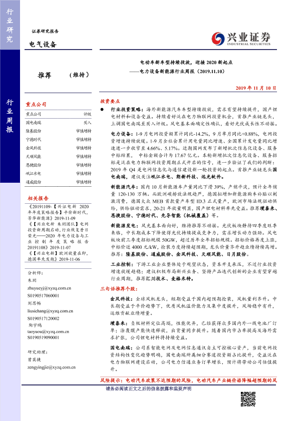 【兴业证券】【20191110】电动车新车型持续投放,迎接2020新起点——电力设备新能源行业周报(2019.11.10)-32页