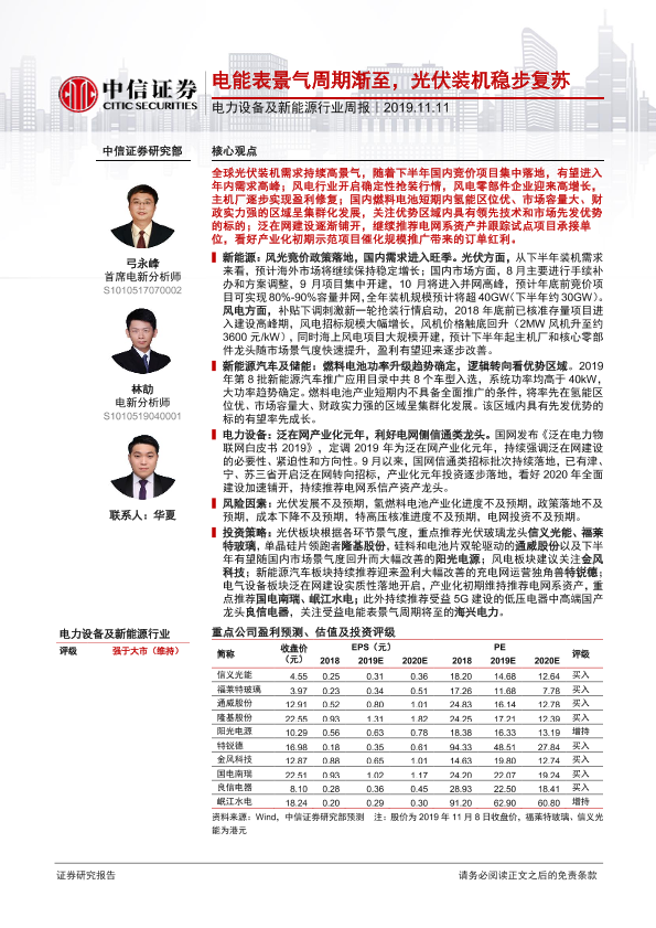 【中信证券】【20191111】电力设备及新能源行业周报:电能表景气周期渐至,光伏装机稳步复苏-11页