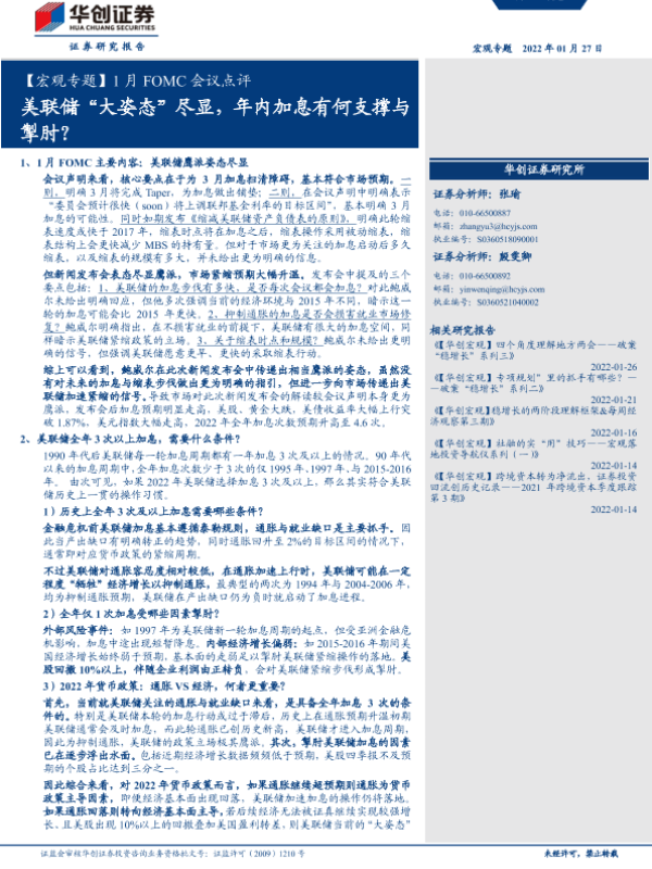 【华创证券】【20220127】1月FOMC会议点评:美联储“大姿态”尽显,年内加息有何支撑与掣肘?-19页