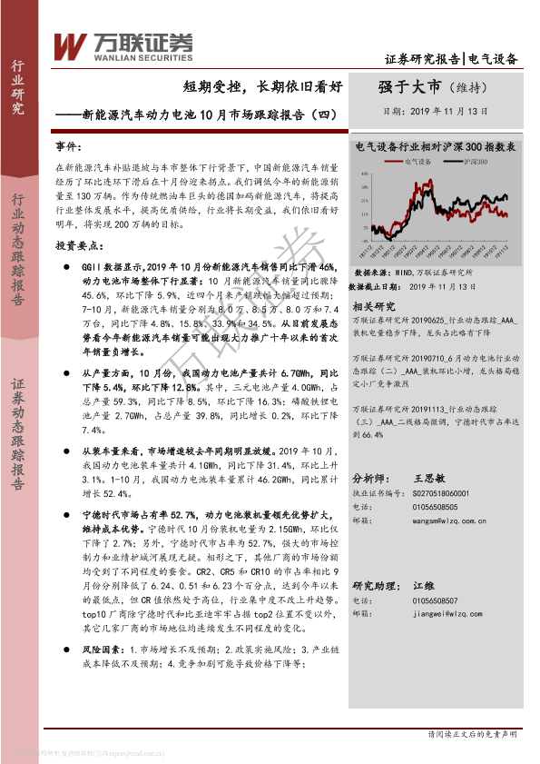 【万联证券】【20191113】新能源汽车动力电池10月市场跟踪报告(四):短期受挫,长期依旧看好-7页