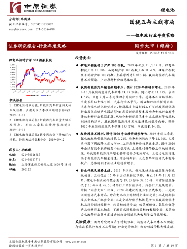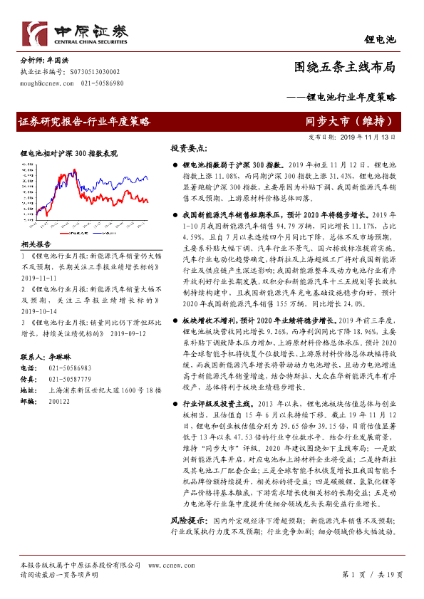 【中原证券】【20191113】锂电池行业年度策略:围绕五条主线布局-19页