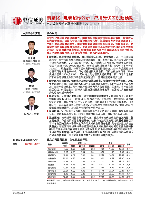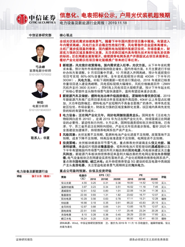 【中信证券】【20191118】电力设备及新能源行业周报:信息化、电表招标公示,户用光伏装机超预期-9页