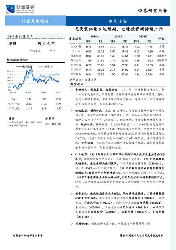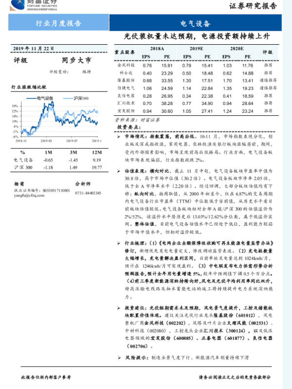 【财信证券】【20191122】电气设备行业月度报告:光伏装机量未达预期,电源投资额持续上升-19页