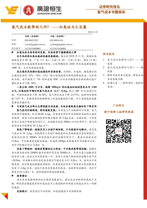 【广证恒生】【20191122】氢气成本能降到几何?——加氢站与汇总篇-21页