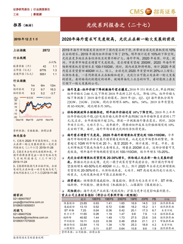 【海通证券】【20191201】2020年海外需求可见度较高,光伏正在新一轮大发展的前夜-23页