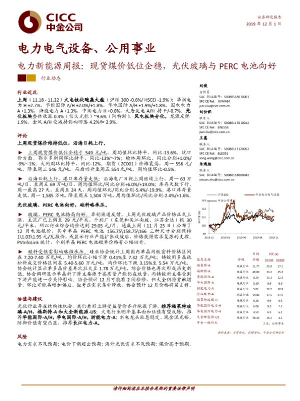 【中金公司】【20191201】电力新能源周报:现货煤价低位企稳,光伏玻璃与PERC电池向好-9页