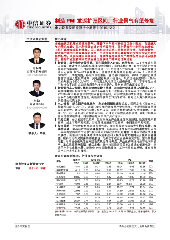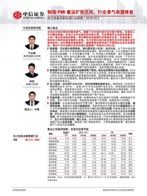 【中信证券】【20191202】电力设备及新能源行业周报:制造PMI重返扩张区间,行业景气有望修复-9页