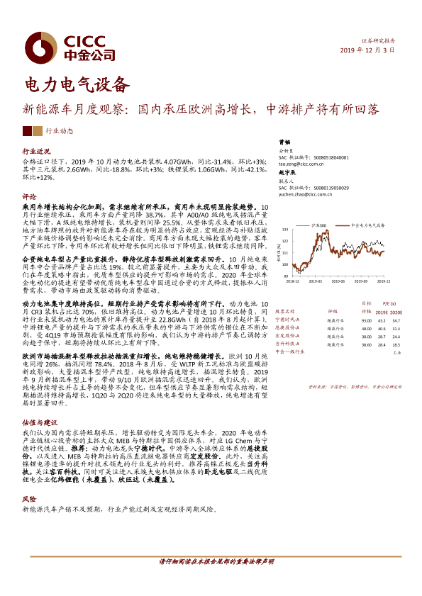 【中金公司】【20191203】新能源车月度观察:国内承压欧洲高增长,中游排产将有所回落-17页