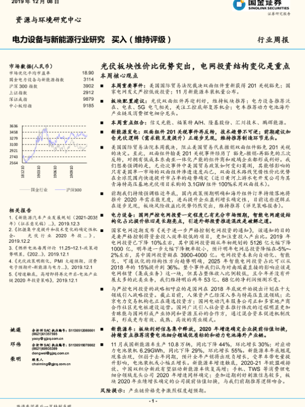 【国金证券】【20191208】电力设备与新能源行业研究周报:光伏板块性价比优势突出,电网投资结构变化是重点-4页