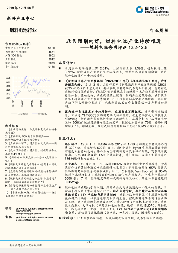 【国金证券】【20191208】燃料电池每周评论:政策预期向好,燃料电池产业持续推进-6页