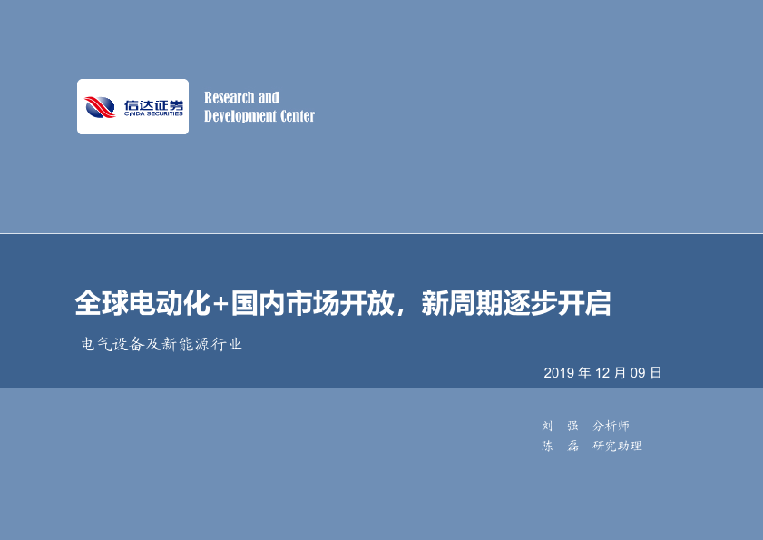 【信达证券】【20191209】电气设备及新能源行业周报:全球电动化+国内市场开放,新周期逐步开启-17页