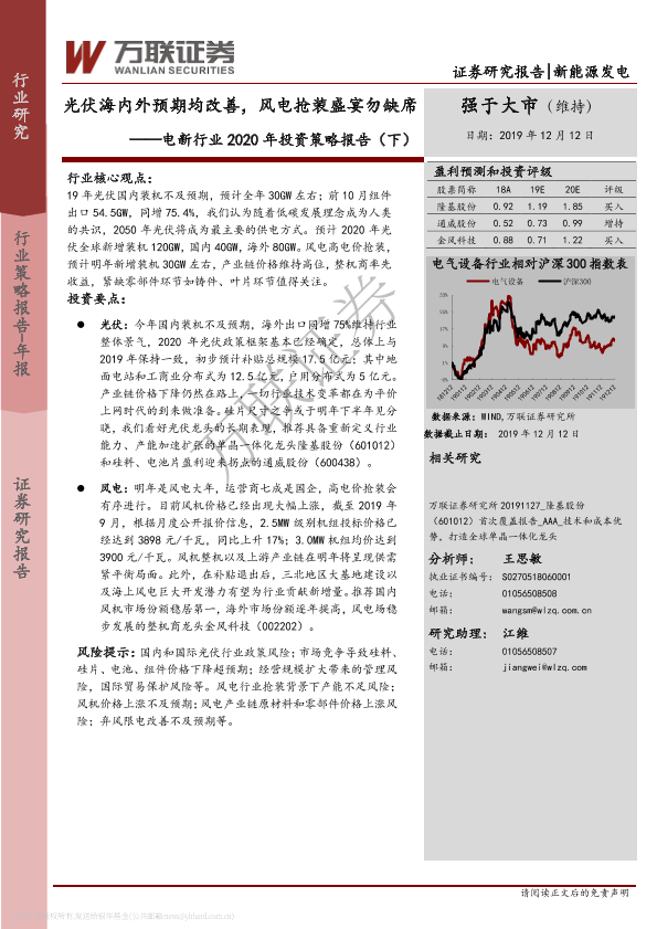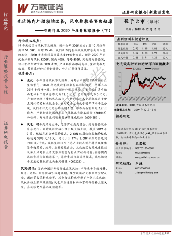 【万联证券】【20191212】电新行业2020年投资策略报告(下):光伏海内外预期均改善,风电抢装盛宴勿缺席-41页
