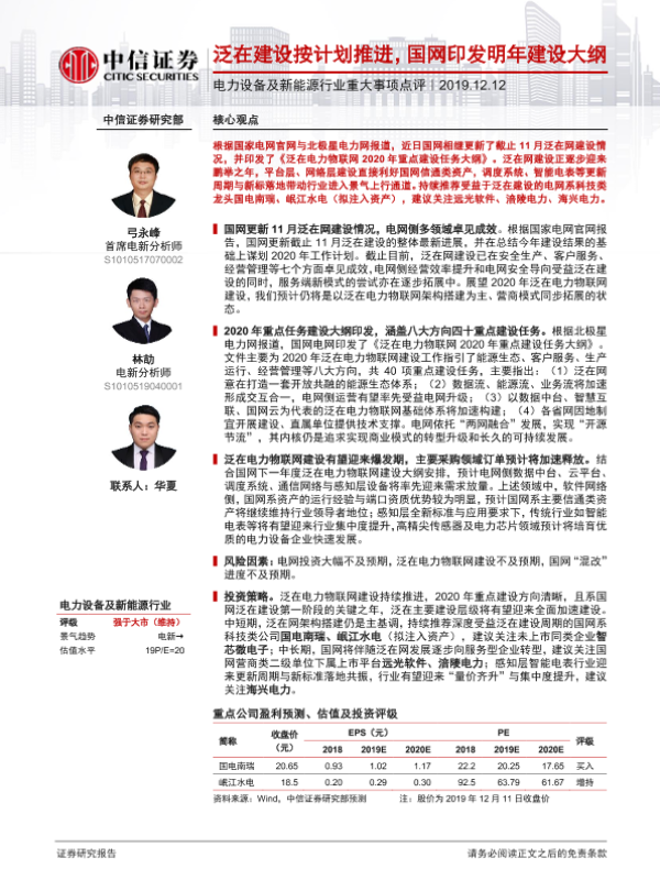 【中信证券】【20191212】电力设备及新能源行业重大事项点评:泛在建设按计划推进,国网印发明年建设大纲-3页