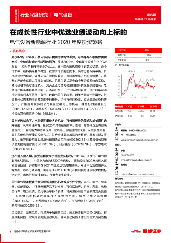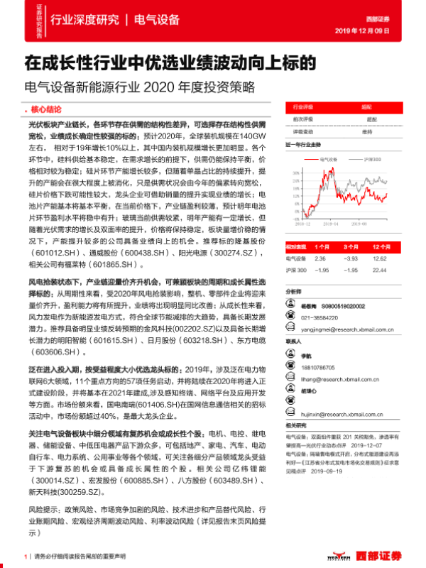 【西部证券】【20191209】电气设备新能源行业2020年度投资策略:在成长性行业中优选业绩波动向上标的-59页