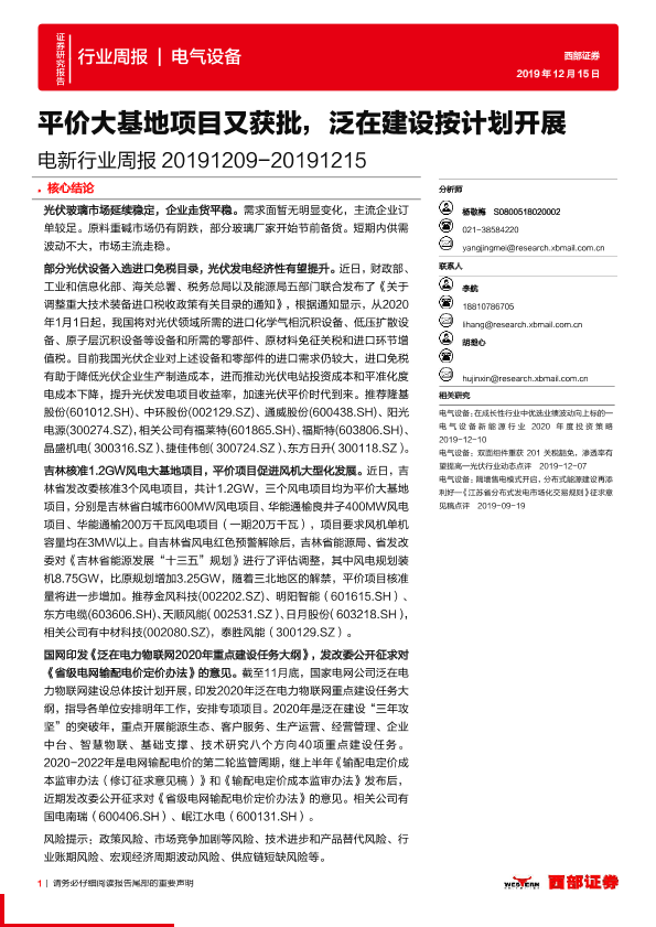 【西部证券】【20191215】电新行业周报:平价大基地项目又获批,泛在建设按计划开展-7页