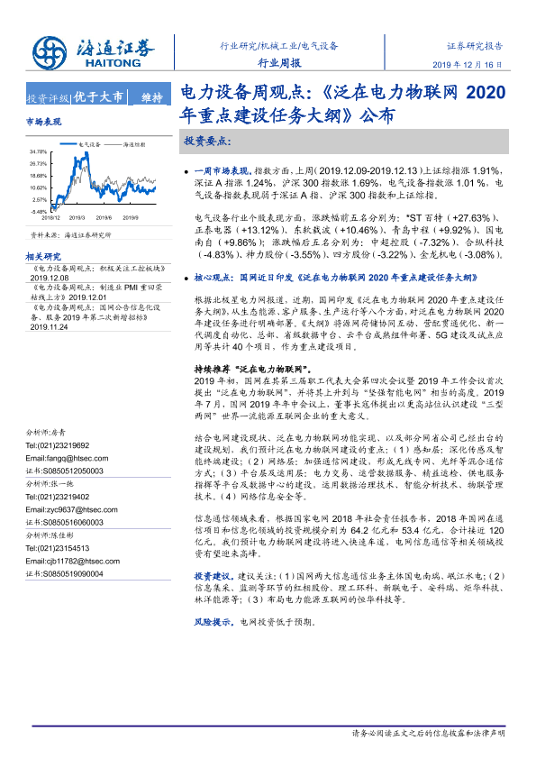 【海通证券】【20191216】电力设备周观点:《泛在电力物联网2020年重点建设任务大纲》公布-3页