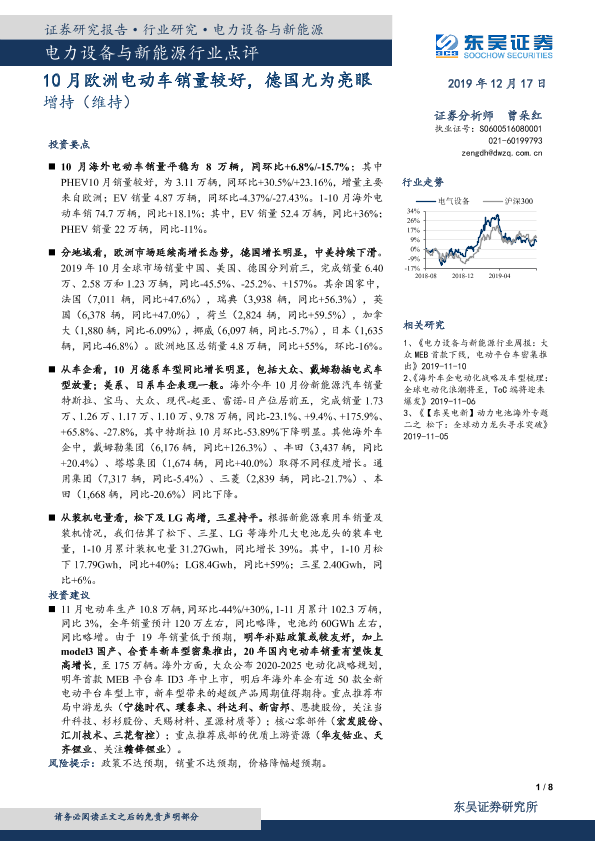 【东吴证券】【20191217】电力设备与新能源行业点评:10月欧洲电动车销量较好,德国尤为亮眼-8页