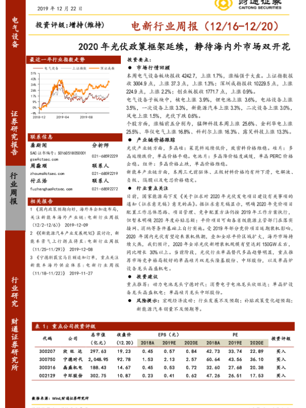 【财通证券】【20191222】20191222-财通证券-电新行业周报:2020年光伏政策框架延续,静待海内外市场双开花-14页