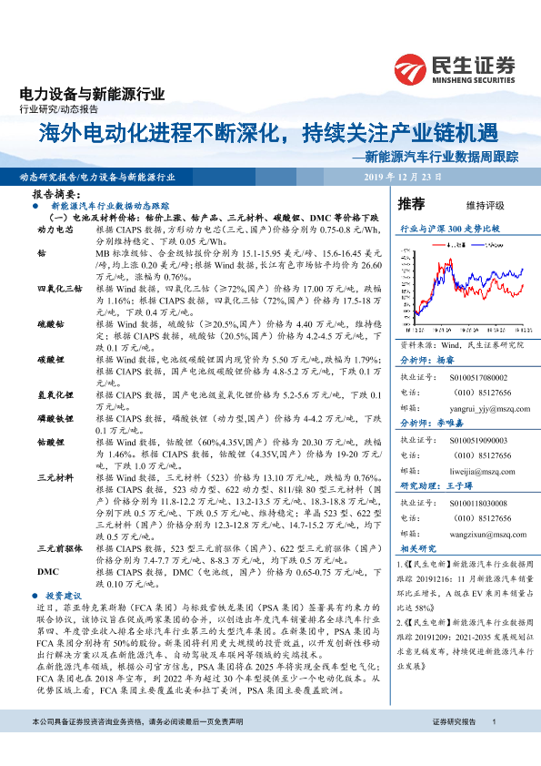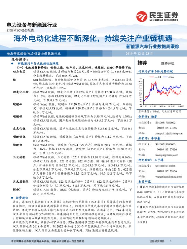 【民生证券】【20191223】新能源汽车行业数据周跟踪:海外电动化进程不断深化,持续关注产业链机遇-13页