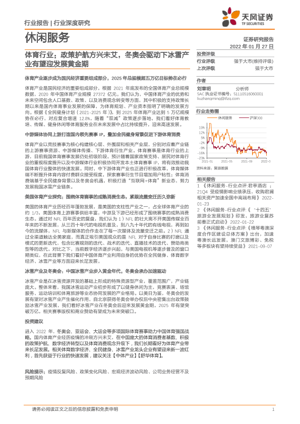 【天风证券】【20220127】体育行业:政策护航方兴未艾,冬奥会驱动下冰雪产业有望迎发展黄金期-53页