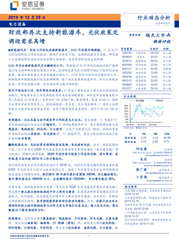 【安信证券】【20191229】财政部再次支持新能源车,光伏政策定调迎需求高增-20页
