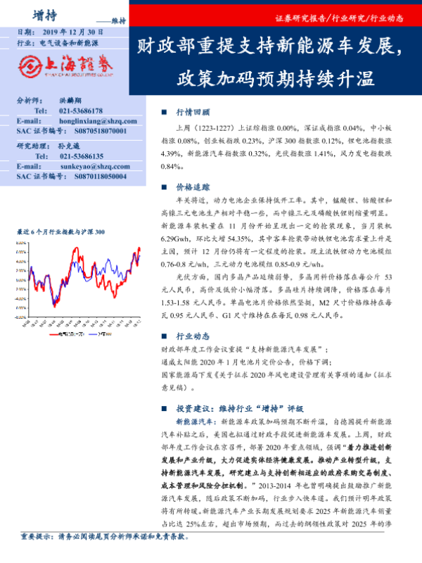 【上海证券】【20191230】电气设备和新能源行业动态:财政部重提支持新能源车发展,政策加码预期持续升温-17页