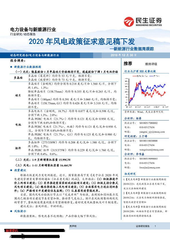 【民生证券】【20191230】2020年风电政策征求意见稿下发—新能源行业数据周跟踪-11页