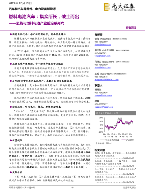 【光大证券】【20191229】20191229-光大证券-氢能与燃料电池产业前沿系列六:燃料电池汽车:集众所长,破土而出-36页