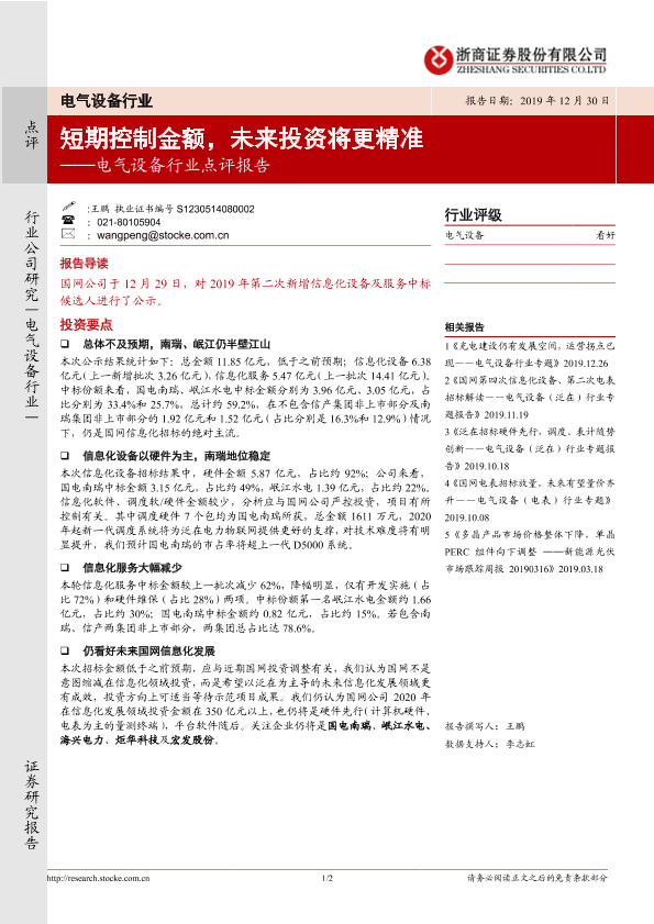 【浙商证券】【20191230】电气设备行业点评报告:短期控制金额,未来投资将更精准-2页