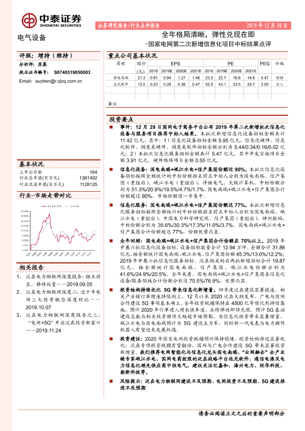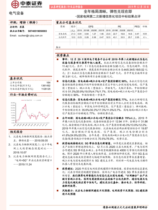 【中泰证券】【20191230】国家电网第二次新增信息化项目中标结果点评:全年格局清晰,弹性兑现在即-14页