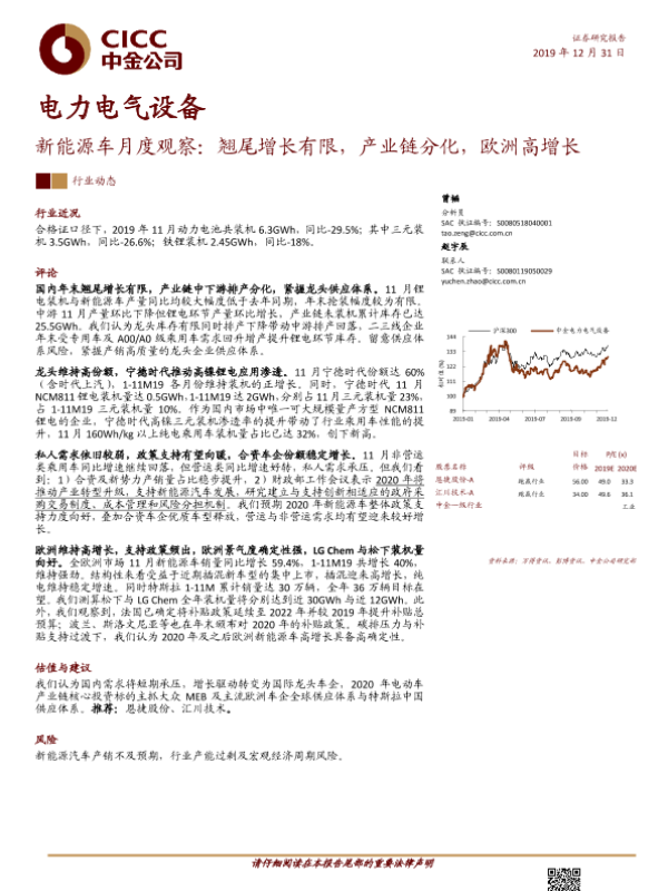 【中金公司】【20191231】新能源车月度观察:翘尾增长有限,产业链分化,欧洲高增长-19页