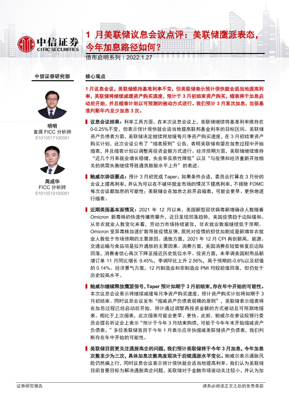 【中信证券】【20220127】1月美联储议息会议点评:美联储鹰派表态,今年加息路径如何?-34页