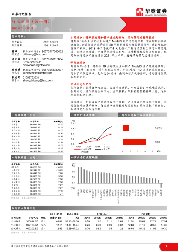 【华泰证券】【20200105】电力设备Ⅱ行业周报(第一周)-14页