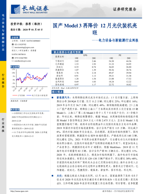 【长城证券】【20200105】20200105-长城证券-电力设备与新能源行业周报:国产Model3再降价 12月光伏装机亮眼-15页