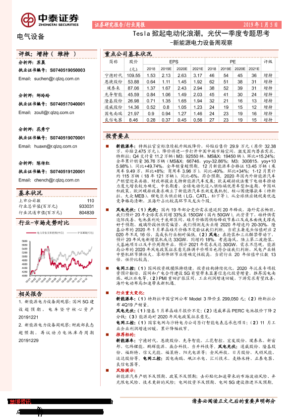 【中泰证券】【20200105】20200105-中泰证券-新能源电力设备周观察:Tesla掀起电动化浪潮,光伏一季度专题思考-20页