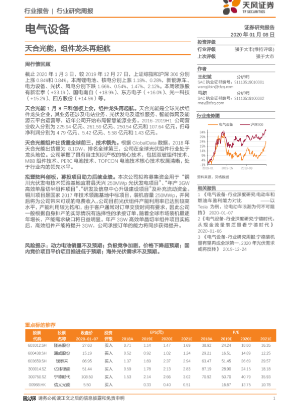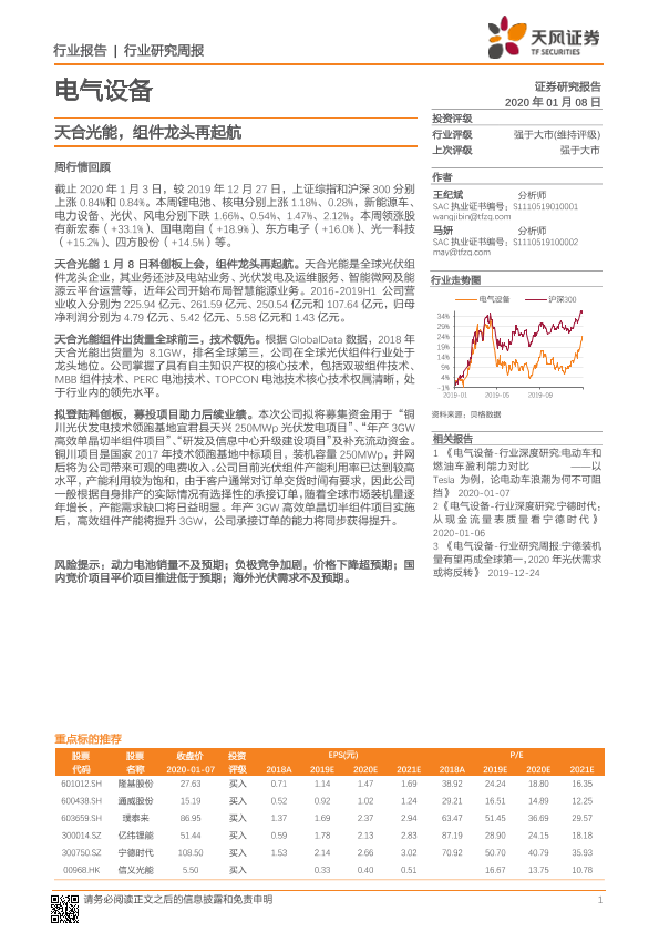【天风证券】【20200108】电气设备行业研究周报:天合光能,组件龙头再起航-19页