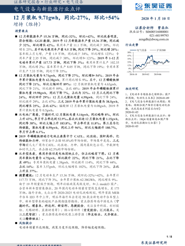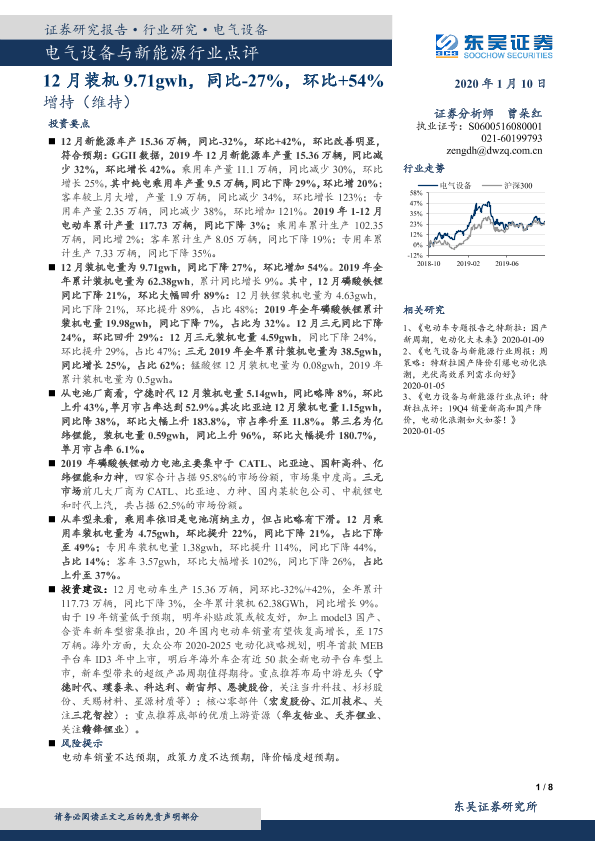 【东吴证券】【20200110】电气设备与新能源行业点评:12月装机9.71gwh,同比-27%,环比+54%-8页