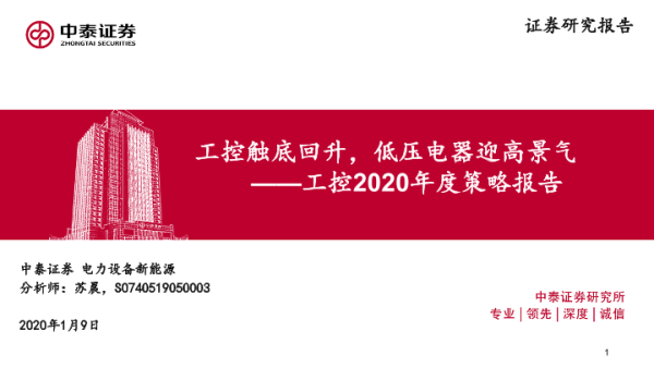 【中泰证券】【20200109】工控2020年度策略报告:工控触底回升,低压电器迎高景气-29页