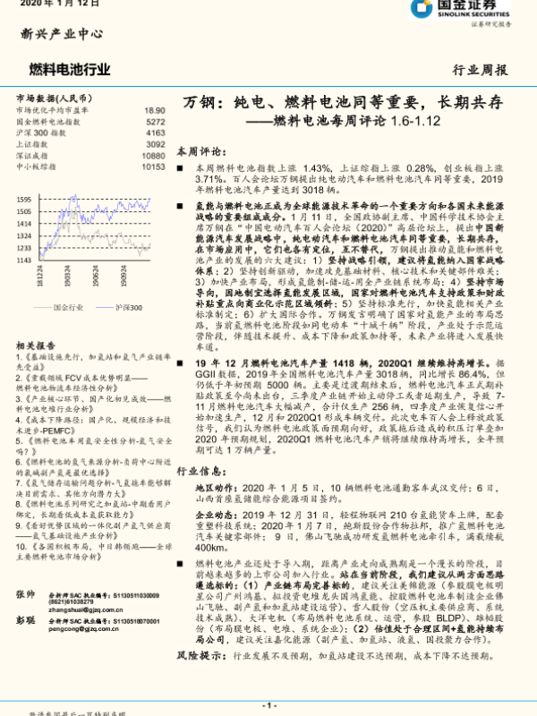【国金证券】【20200112】燃料电池每周评论:万钢:纯电、燃料电池同等重要,长期共存-7页