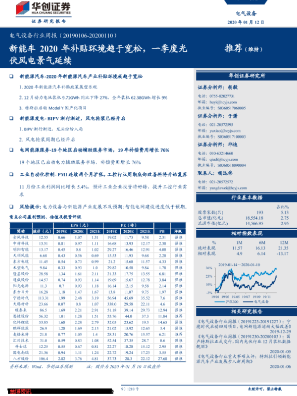 【华创证券】【20200112】电气设备行业周报:新能车2020年补贴环境趋于宽松,一季度光伏风电景气延续-27页