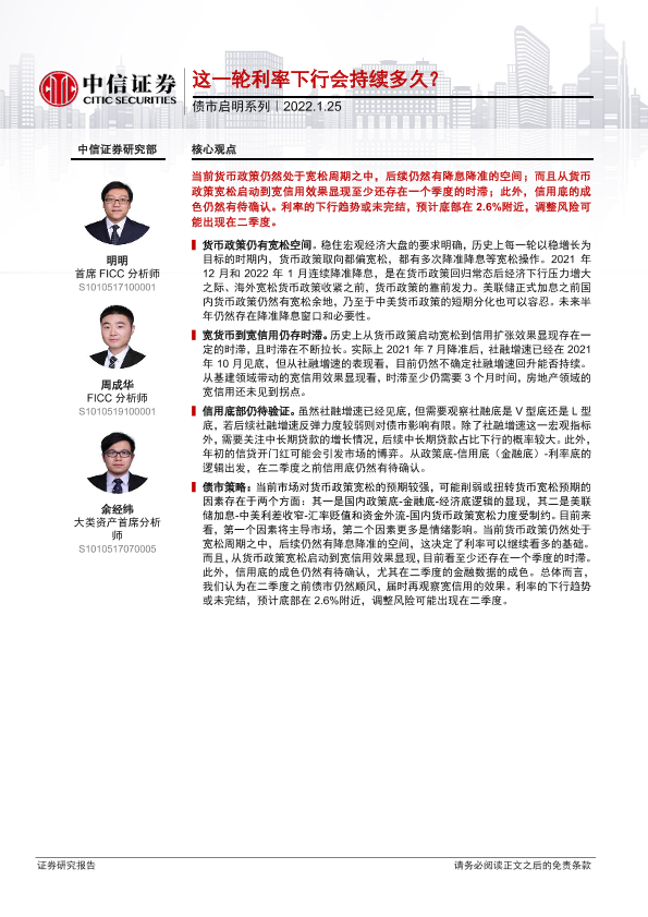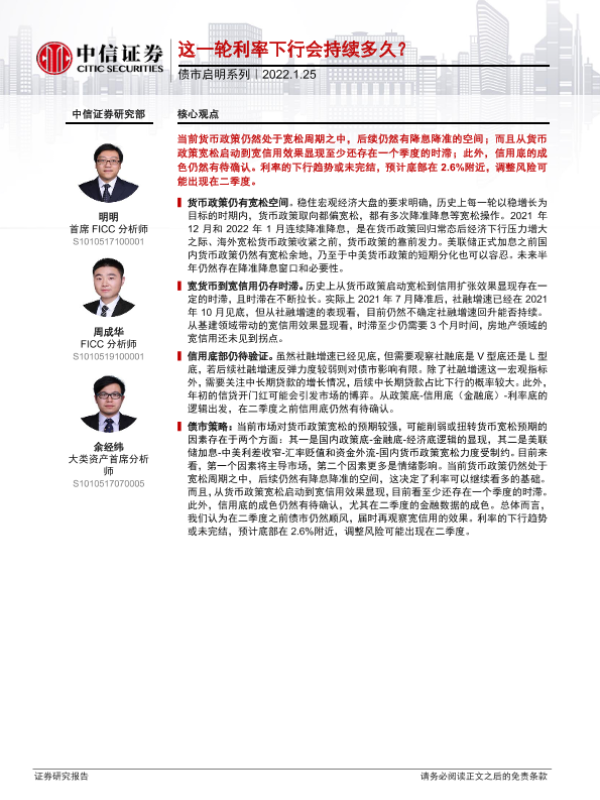 【中信证券】【20220125】这一轮利率下行会持续多久?-30页