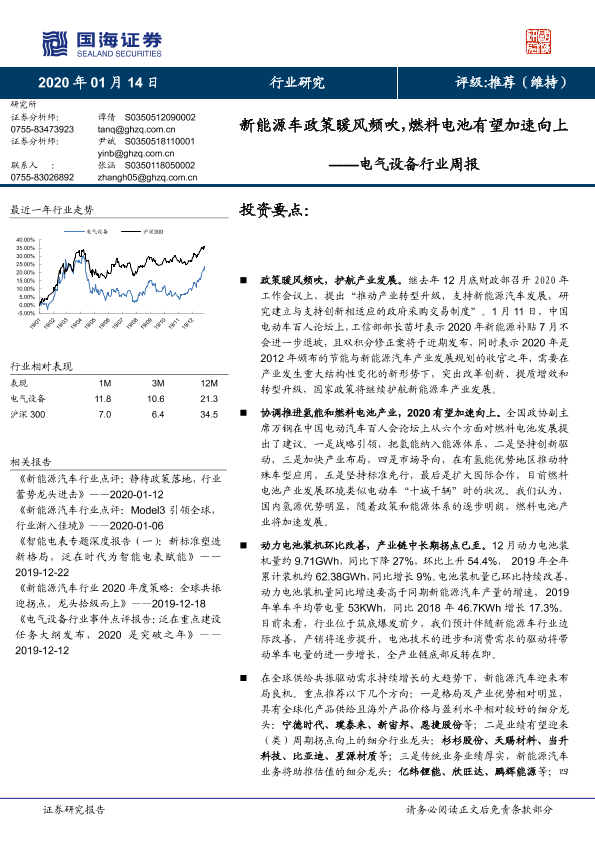 【国海证券】【20200114】电气设备行业周报:新能源车政策暖风频吹,燃料电池有望加速向上-14页