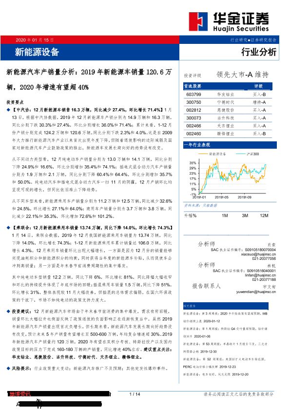 【华金证券】【20200115】新能源汽车产销量分析:2019年新能源车销量120.6万辆,2020年增速有望超40%-14页