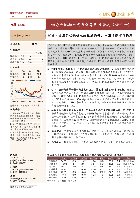 【海通证券】【20200119】动力电池与电气系统系列报告之(四十一):新技术应用带动铁锂电池性能提升,车用渗透有望提高-12页