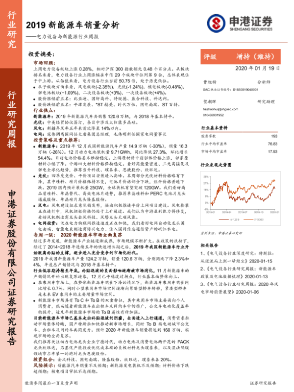 【申港证券】【20200119】2019新能源车销量分析——电力设备与新能源行业周报-51页