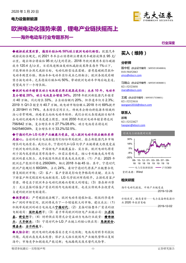 【光大证券】【20200120】海外电动车行业专题系列一:欧洲电动化强势来袭,锂电产业链扶摇而上-34页