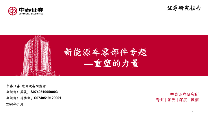 专题研究 中泰证券 新能源汽车 证券分析 零部件